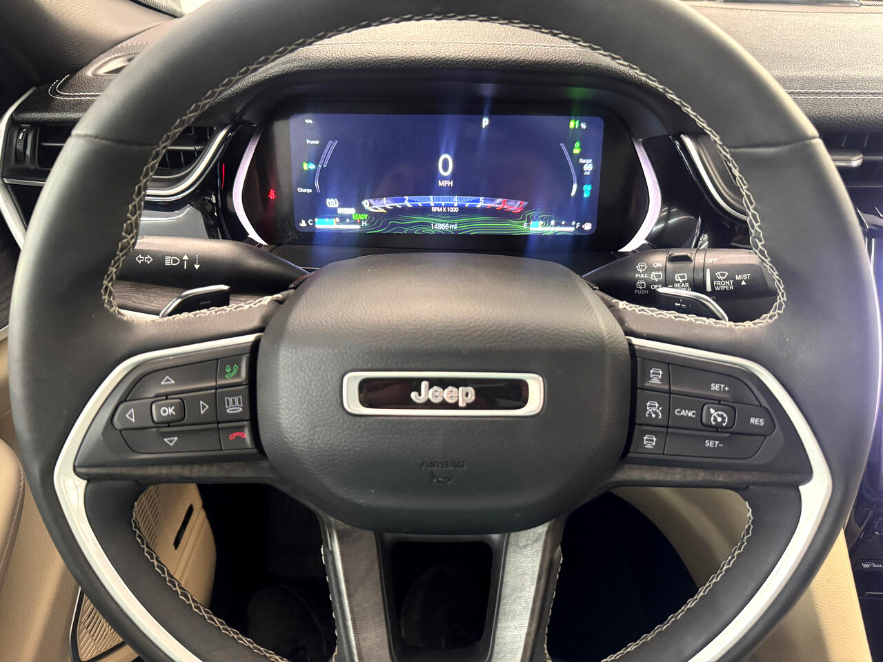 1 Owner Carfax Certified and in immaculate original condition. 2023 Jeep Grand Cherokee 4xe AWD Plug In Hybrid SUV. Just 14,800 Miles. Equipped with the 2.0 Liter 4 with up to 30 miles of all electric driving range. Finished in Bright White over Beige Leather. Highly optioned with Panoramic Roof, Alpine Premium Sound, Navigation, Full Driver Safety Options, Heated Seats all around, Heated Wheel, Passenger Side Infotainment System, Alloy wheels and much more. Fully serviced and factory warrantied. Please contact us for more info....